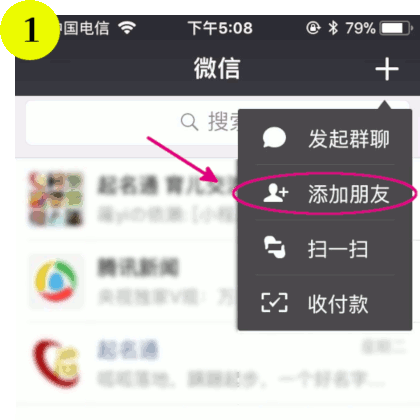 二、手工关注"起名通"的示意图: